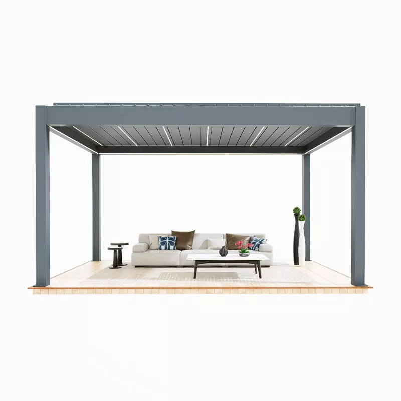 Podporuje prispôsobenie neštandardných rozmerov (2000×2000mm - 6000×6000mm), hlavne v tvare štvorhranných štvorhranných pavilónov. Hrúbku stĺpov, materiál strechy a moduly inteligentných funkcií ovládania je možné upraviť podľa potreby. Inštalácia využíva betónovú základňu alebo rozperné skrutky na upevnenie stĺpov a inteligentné komponenty sú uvedené do prevádzky a prepojené na mieste. Počas celého procesu nie je potrebné zváranie. Profesionálny tím môže dokončiť inštaláciu a uvedenie inteligentného riadiaceho prepojenia do prevádzky pavilónov štandardnej veľkosti za 1 deň, pričom vyváži efektivitu inštalácie, úhľadnosť vzhľadu a inteligentný zážitok.